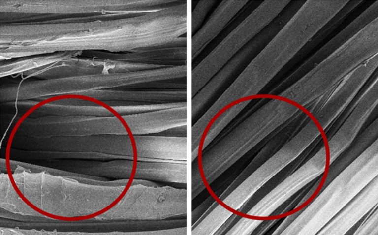 • Comparison Of Silk Fiber Detail Image Under 500x Electron Microscope After Machine Washing