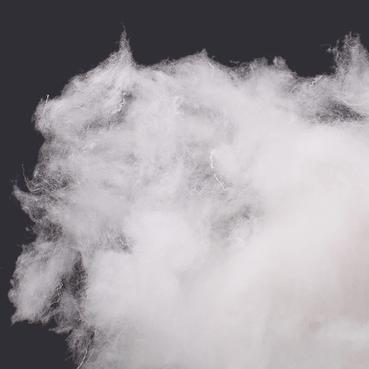 PP cotton filling is a synthetic material made from polypropylene fibers, belonging to chemical fiber products. It has good air permeability but relatively poor moisture absorption. It may feel stuffy when used for a long time, and some people with sensitive skin may experience slight discomfort. It’s soft and elastic, but it tends to flatten and lose elasticity after long-term use, requiring regular patting to restore its shape.