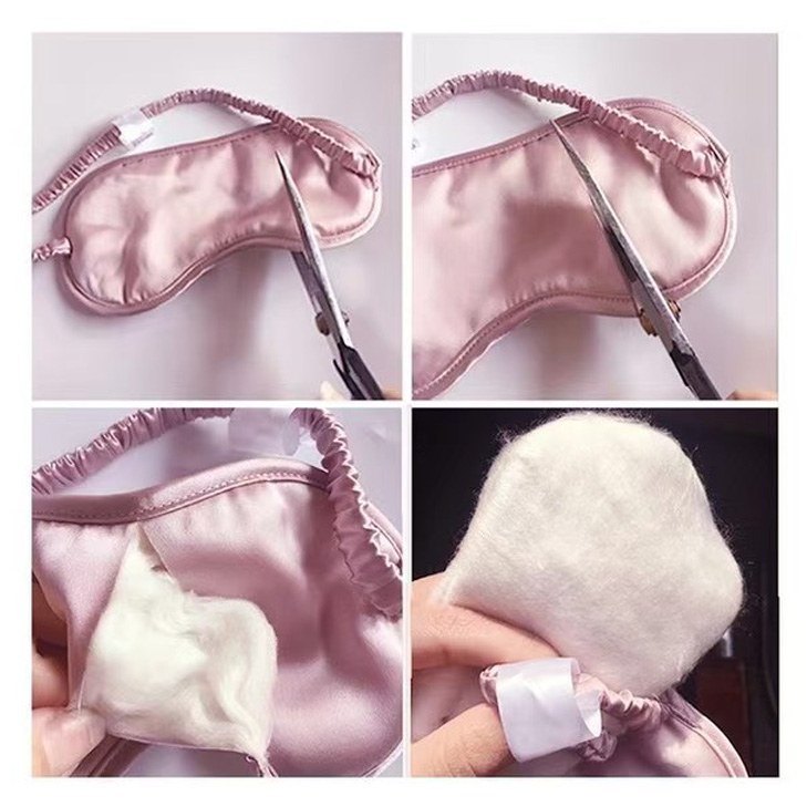 Silk eyemask can be done with silk satin with various of momme such as 16/19/22/25 momme, normally 22 momme silk satin is the best popular for production.